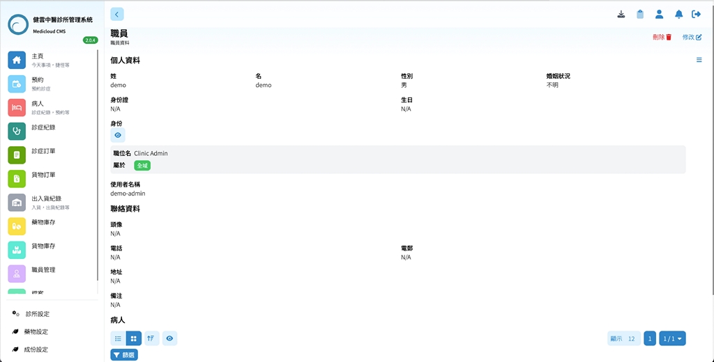 - 在“職員“頁面的右上方,點擊修改按鈕以對資料作更改。